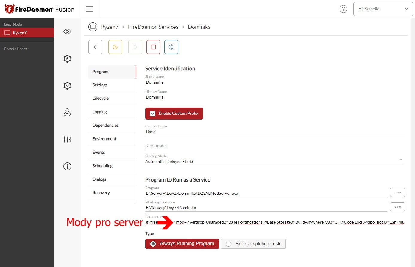 - Ulož a můžeš sepnout ve FireDaemonu (Server Mod update)