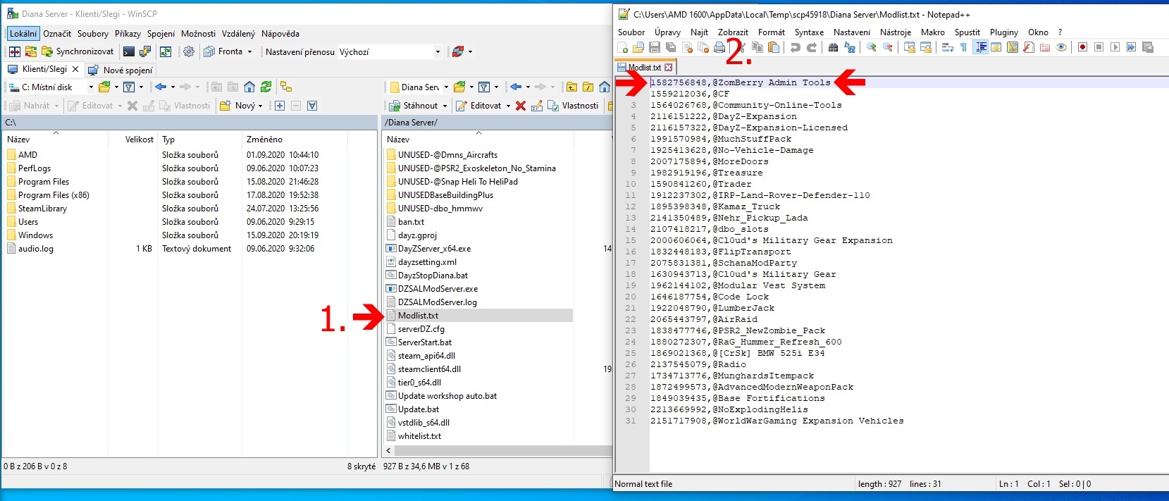 - Připoj se přes WinSCP a v hlavní složce serveru najdi Modlist.txt