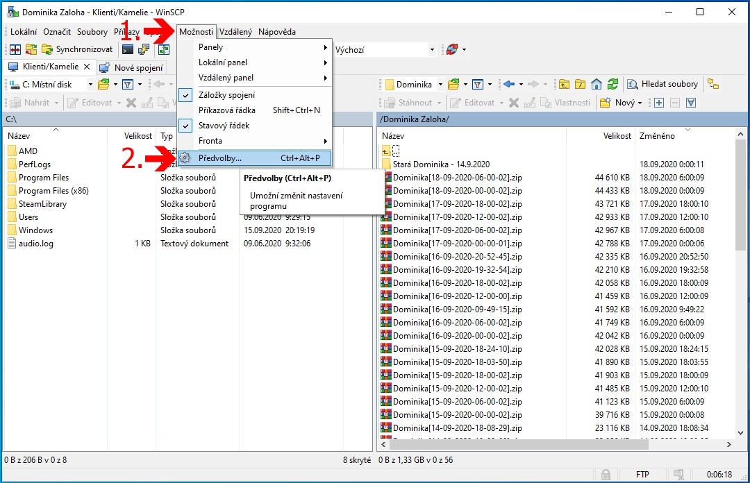 - Klikneme na Možnosti (ps: musíte být přihlášení na serveru)