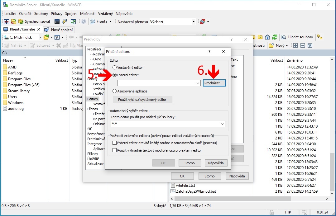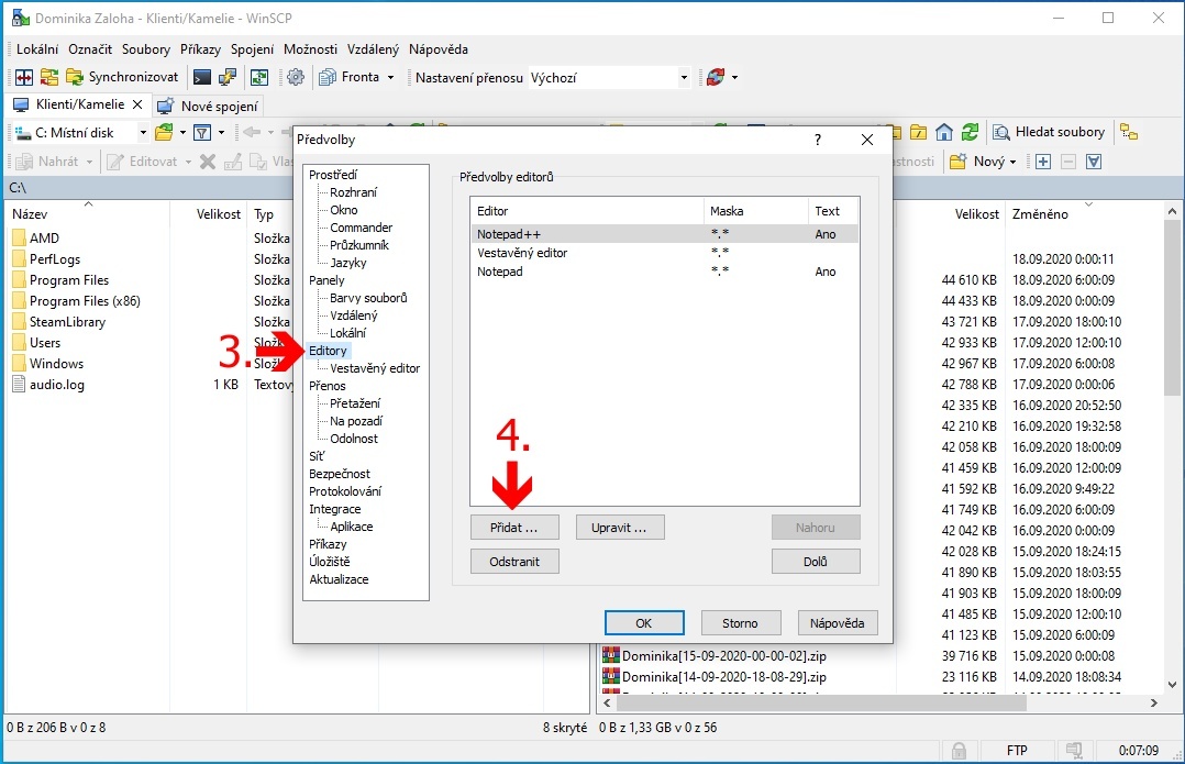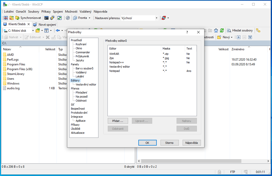 WinSCP nabízí i možnost výměny editoru třeba na Notepad++